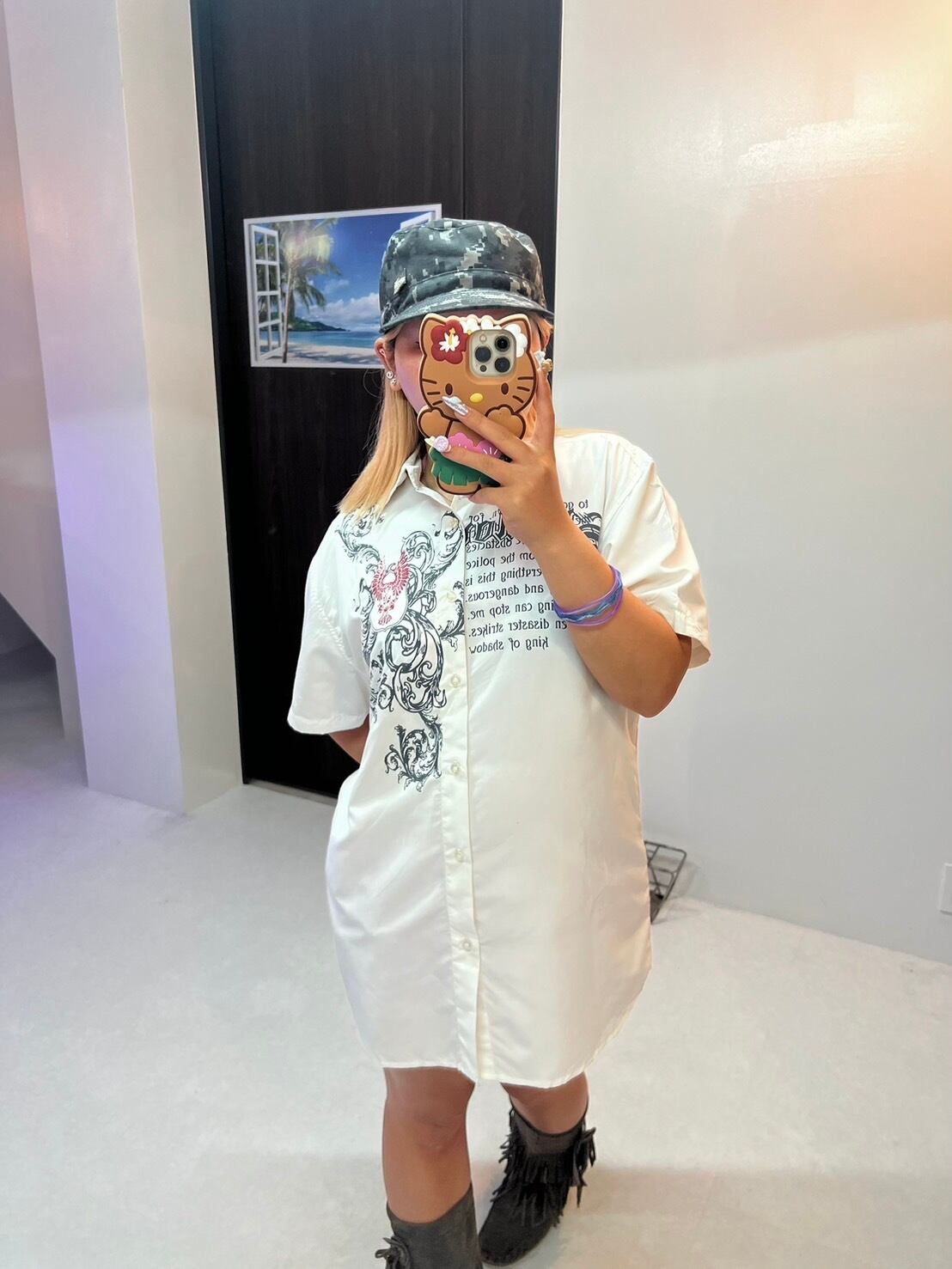 素材: 100Polyester サイズ: M(表記) 肩幅49cm 身幅53cm 裾幅57cm 総丈79cm ダメージ: 画像16枚目のような汚れがあります。 着用モデル身長: 155cm