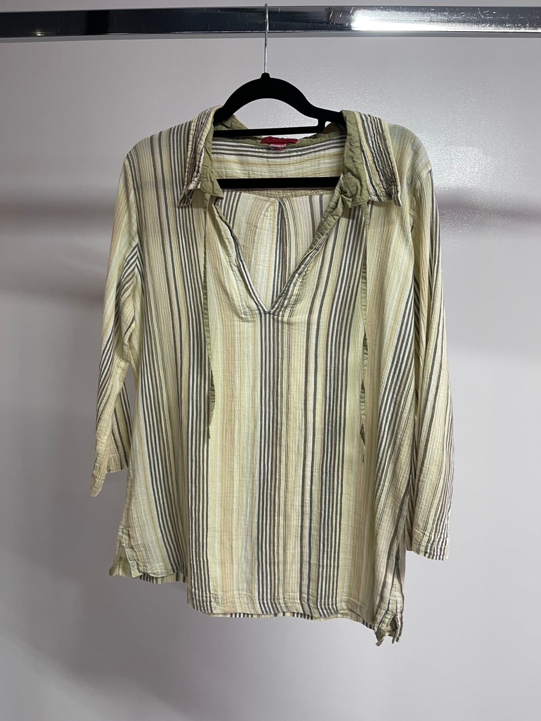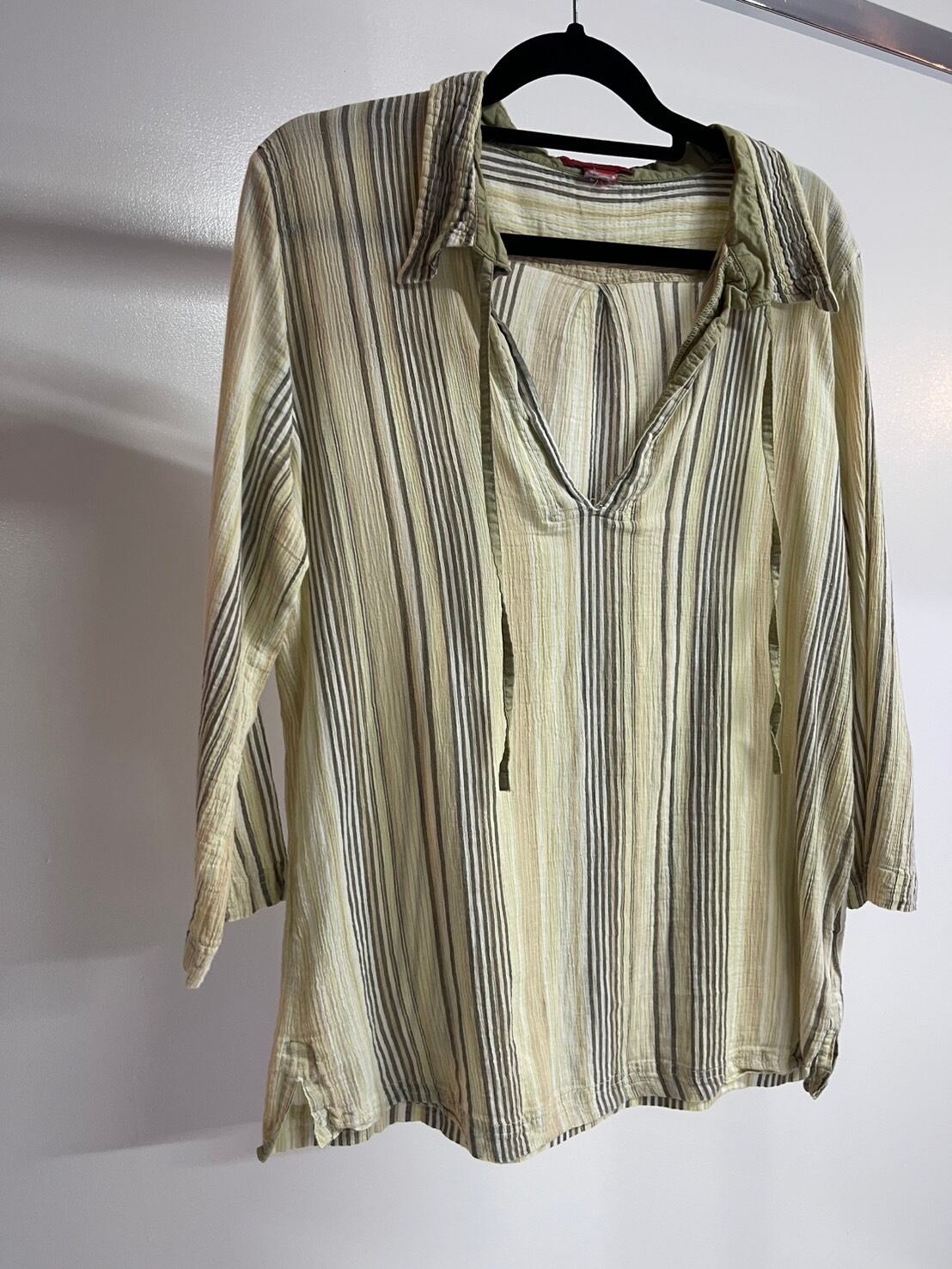 素材 : 100%Cotton サイズ : サイズ表記L 肩幅41cm 身幅54.5cm 裾幅55cm 袖丈45.5cm 紐丈32cm 総丈65cm ダメージ : 全体的に毛羽立ちがあります 着用モデル身長: 175cm