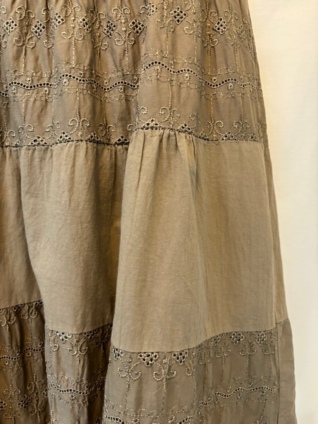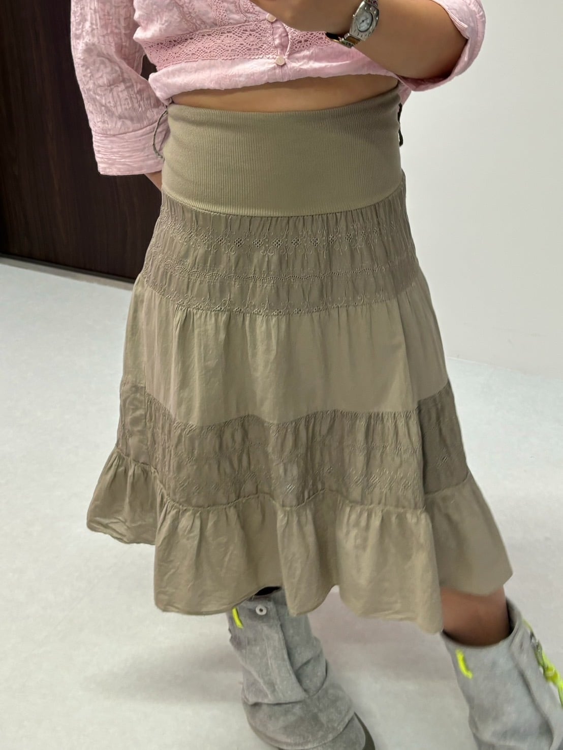 素材: 95%Cotton 5%Elastam サイズ: ウエスト幅(ゴム)31cm〜40cm 総丈67cm 着用モデル身長: 155cm