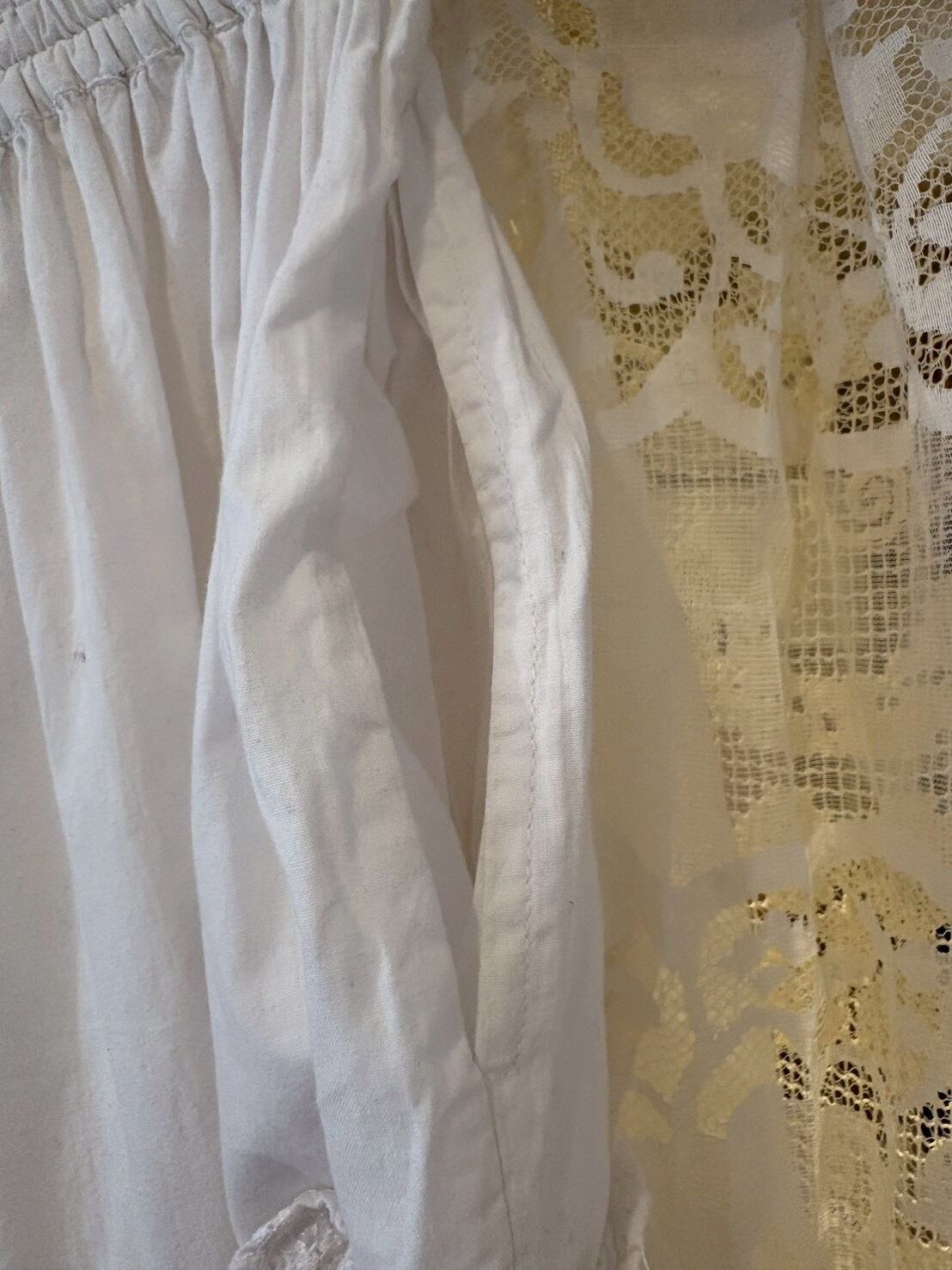 素材: 100%Cotton サイズ: ウエスト幅(ゴム)27cm 裾幅111cm 総丈71cm ダメージ: 写真18〜19枚目のほつれがあります。 着用モデル身長: 163cm