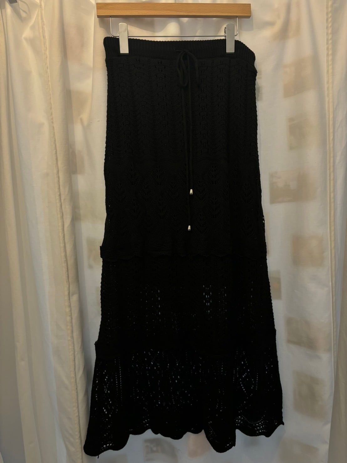 素材: 100%Acrylic サイズ: L(表記) ウエスト幅36cm〜42cm(ゴム) 総丈100cm 着用モデル身長: 155cm
