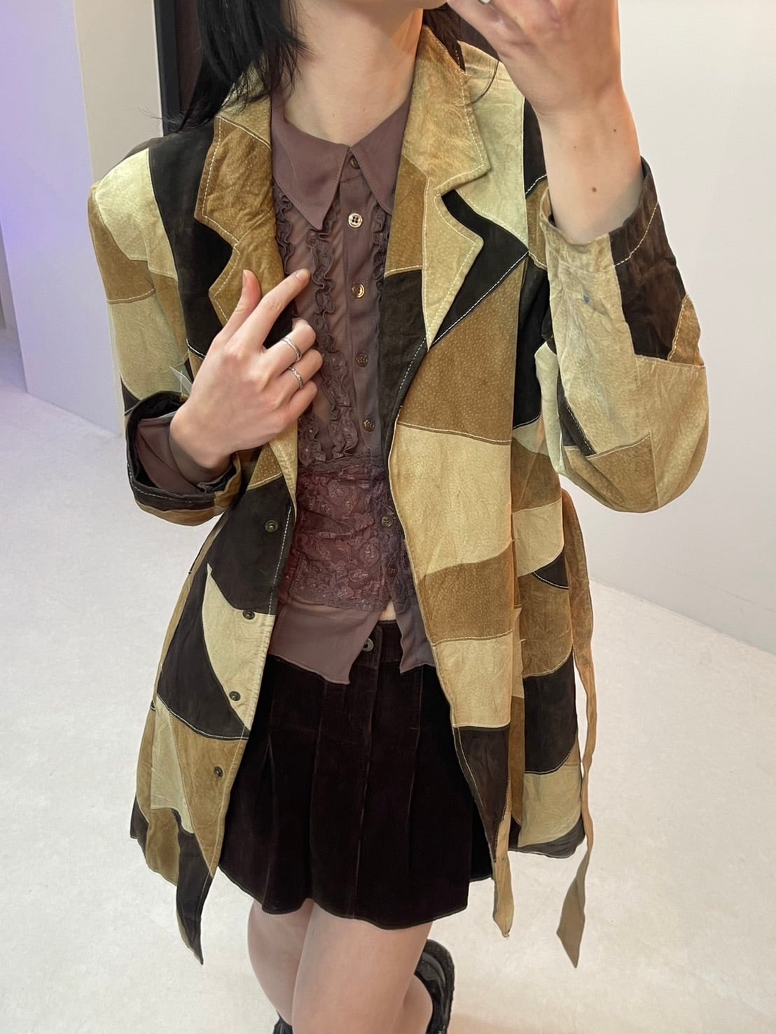素材: 100%Polyester サイズ: M(表記)肩幅34cm 身幅38cm 袖丈61cm 総丈57cm ダメージ: 写真16枚目の糸のほつれ、17枚目の穴があります。 着用モデル身長: 163cm