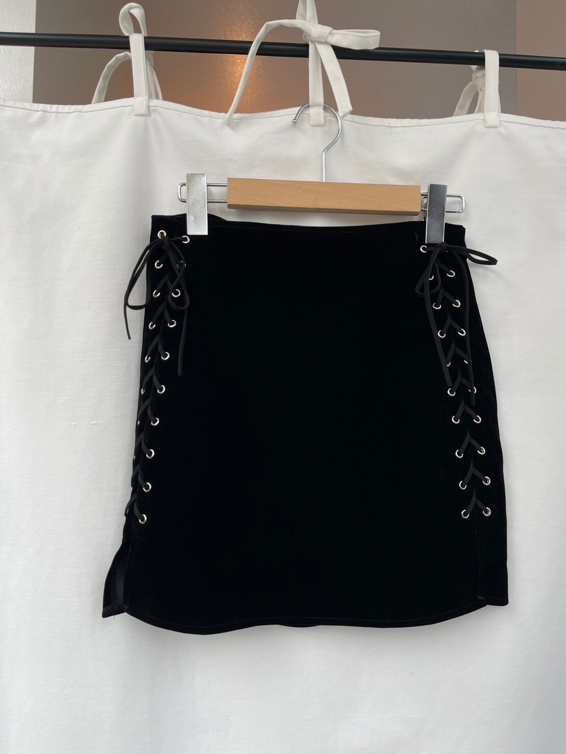 素材 : 100%Polyester サイズ : サイズ表記S ウエスト幅32.5cm ヒップ幅46cm 裾幅47.5cm 総丈39.5cm ダメージ : 写真の10枚目のようなダメージがあります 着用モデル身長 : 175cm