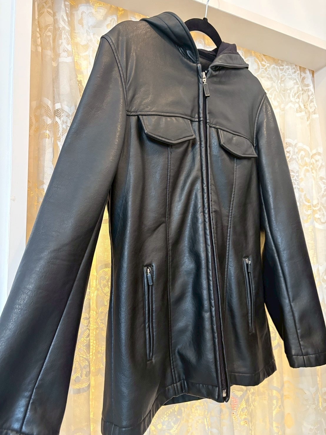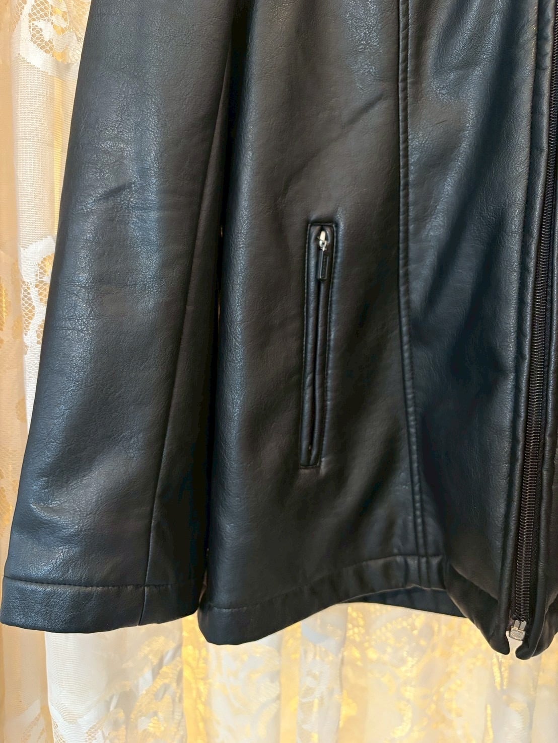 素材: 55%Polyvinyl Chlorid 43%Polyester 2%Polyurethane サイズ: S(表記)肩幅42cm 身幅44cm 袖丈62cm 総丈71cm 着用モデル身長: 163cm