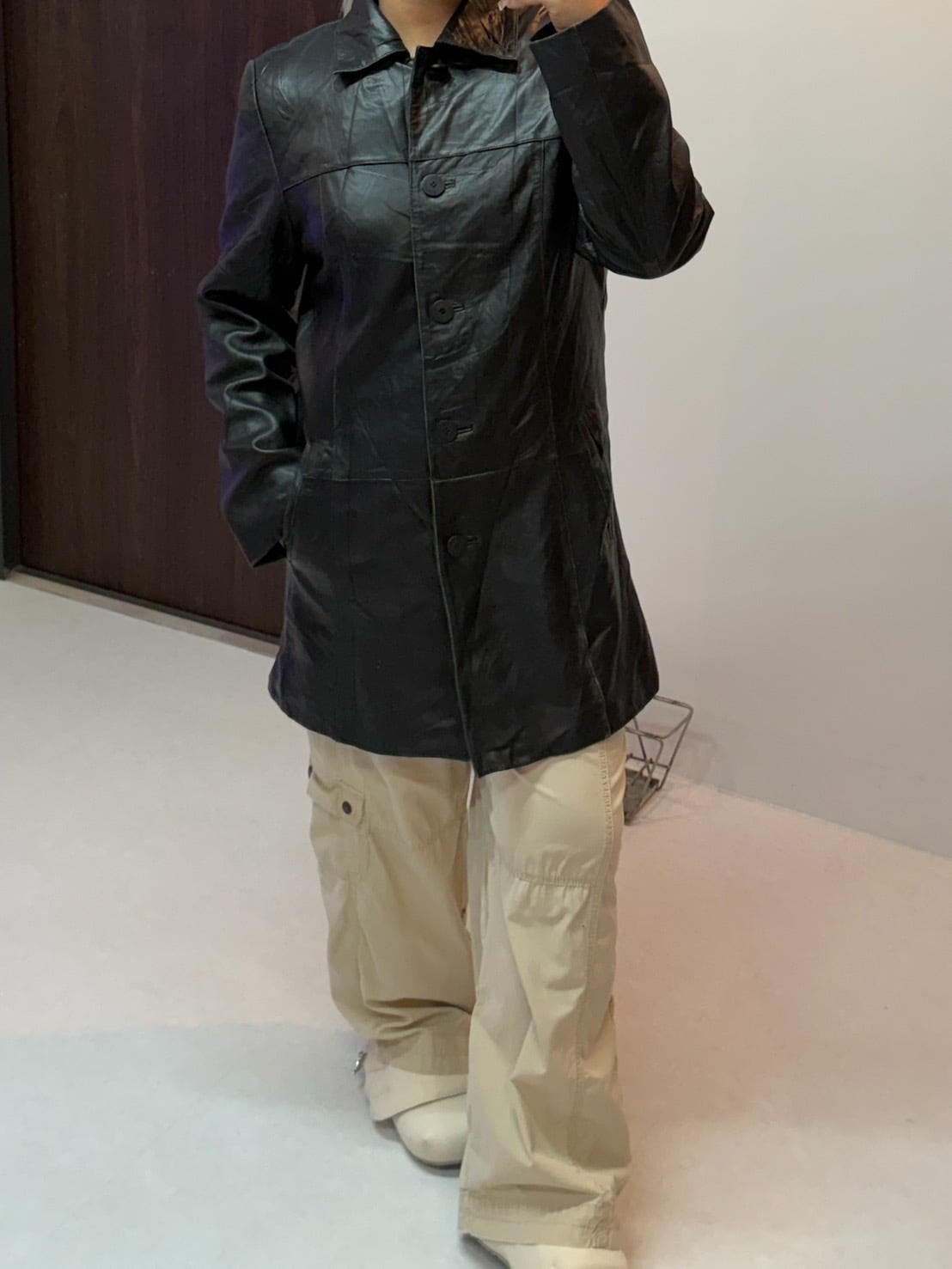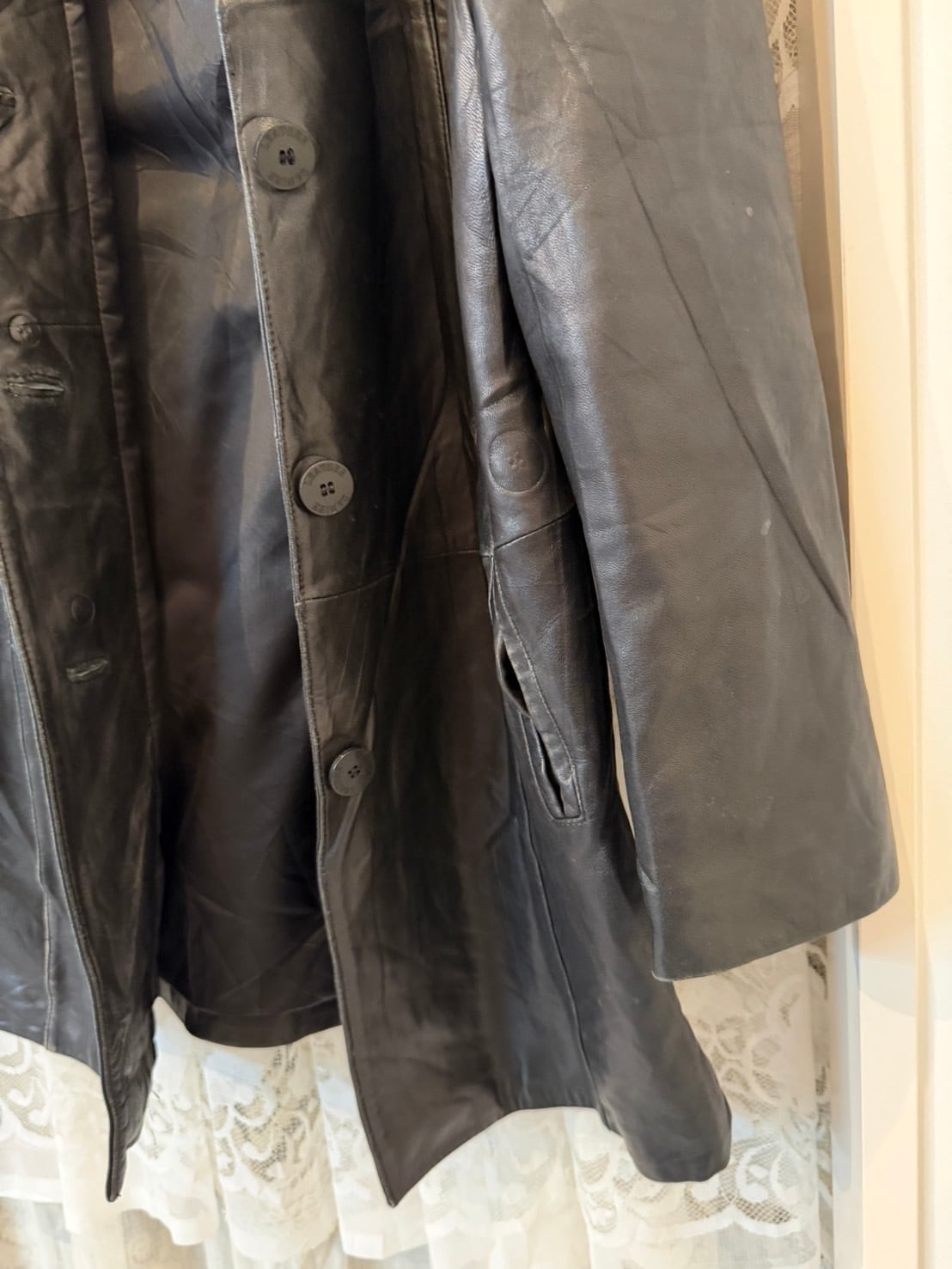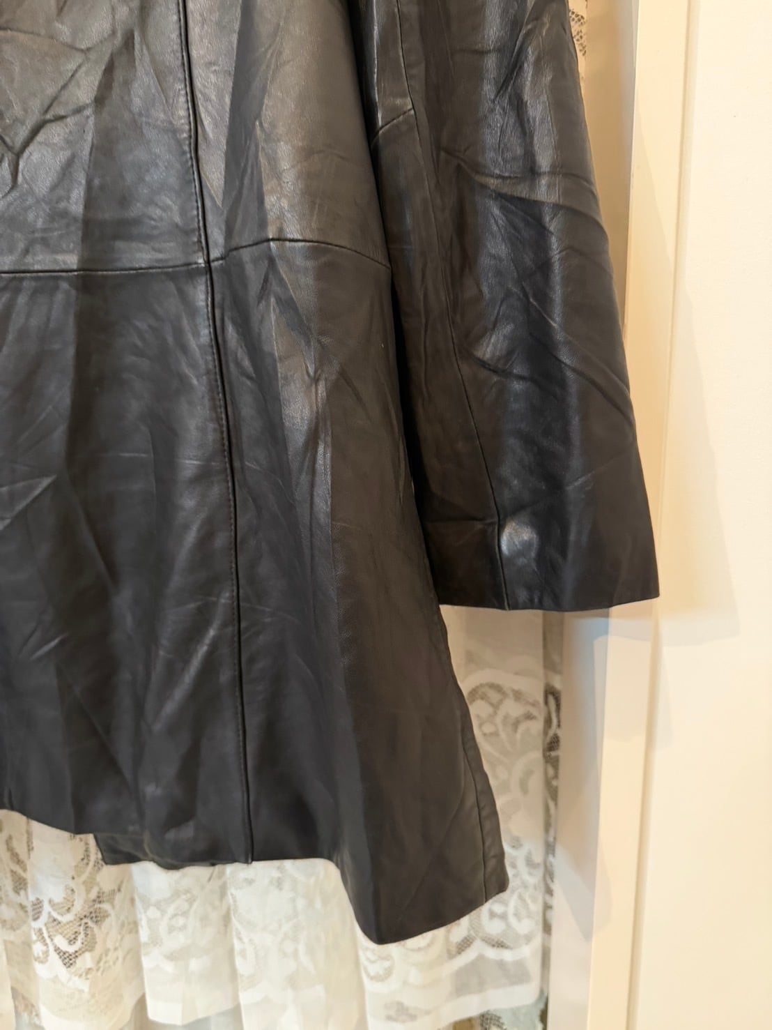 素材: 50%Nylon 50%Acetate サイズ: M(表記) 肩幅42.5cm 身幅50cm 裾幅56cm 総丈90cm ダメージ: 画像16枚目のようなチェーンの破損があります。
