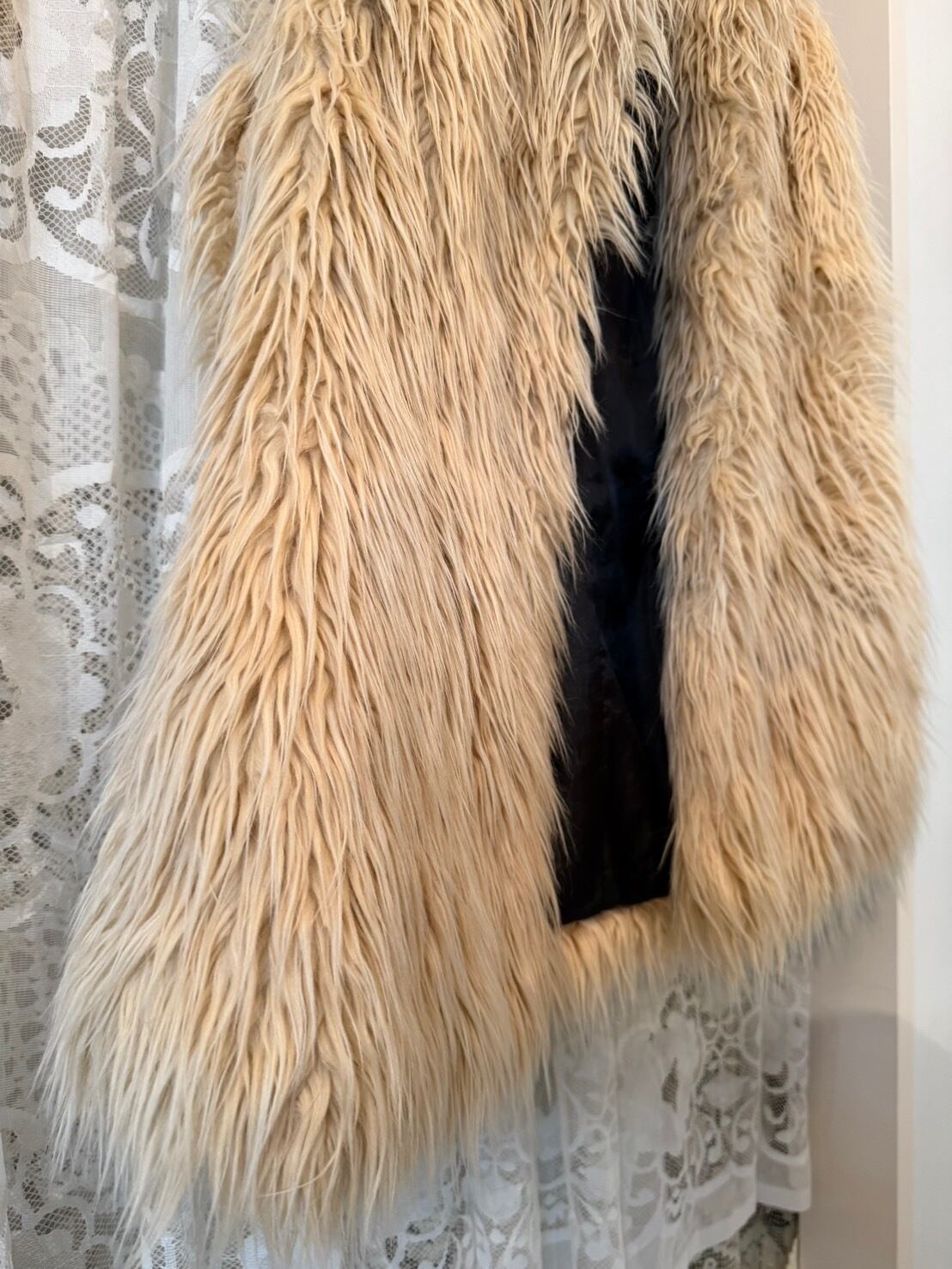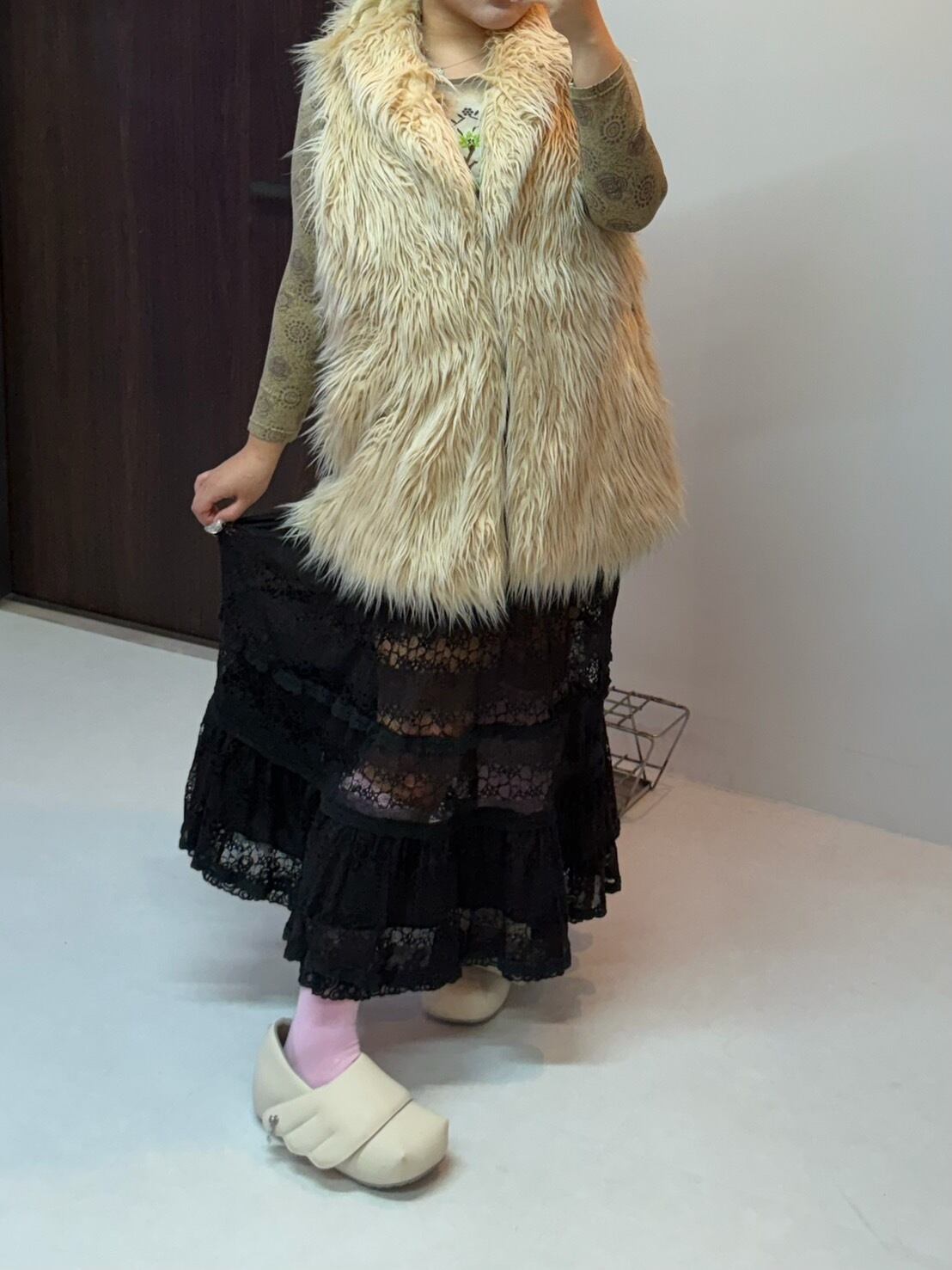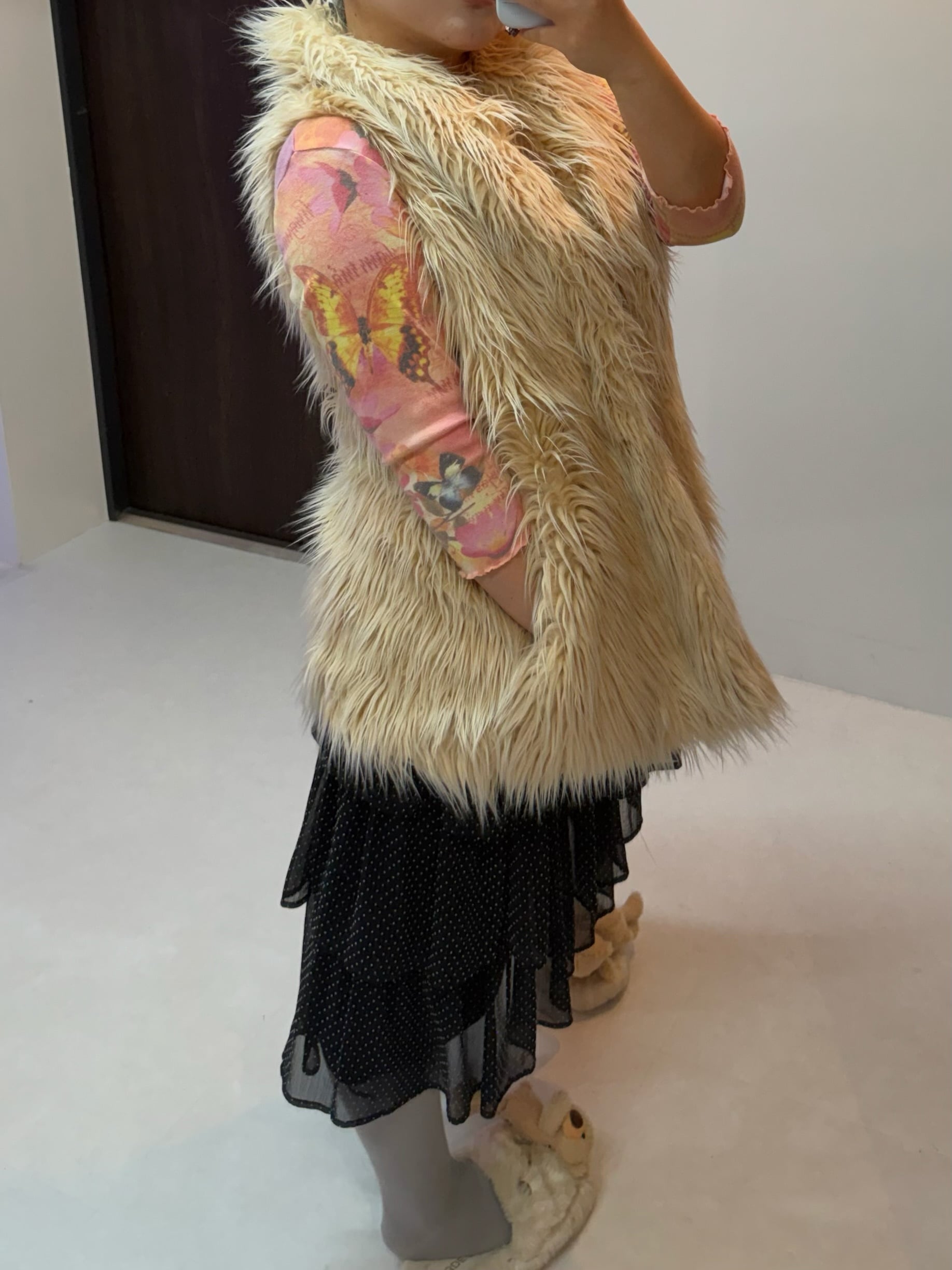 素材: 100%Polyester(表記なし) サイズ: 肩幅38cm 身幅52.5cm 裾幅56cm 総丈89cm 着用モデル身長: 155cm