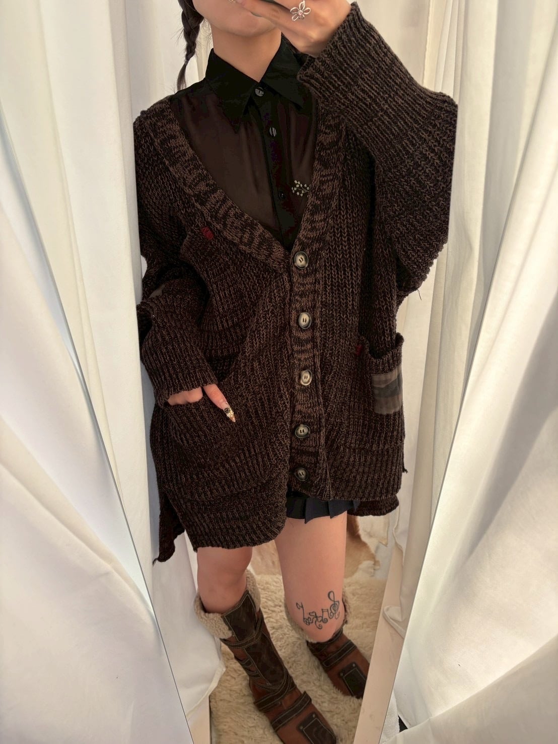素材: 100%Cotton サイズ: S(表記)肩幅65cm 身幅58cm 袖丈52cm 総丈84cm ダメージ: 写真14~16枚目のほつれ、ダメージがあります。 着用モデル身長: 163cm