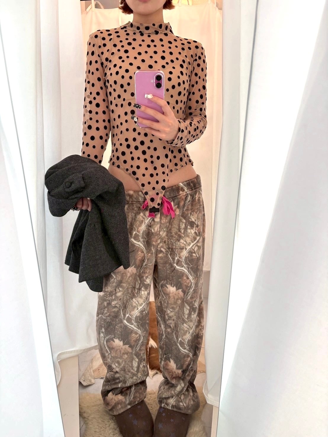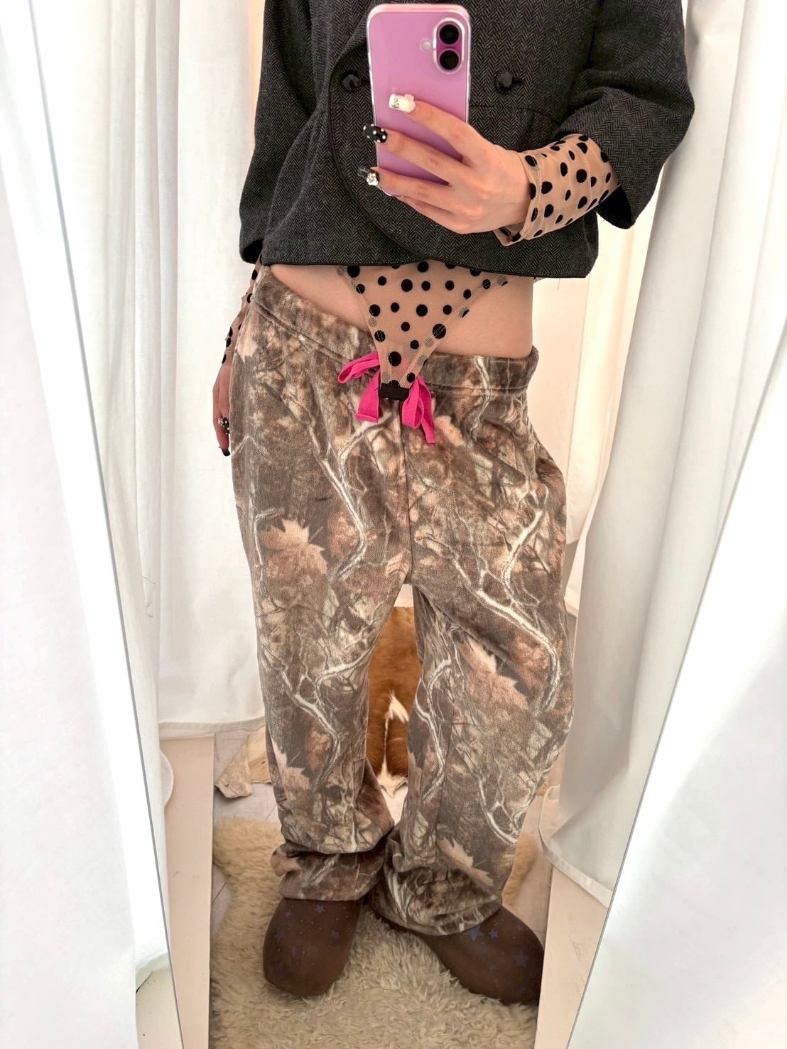 素材: 100%Polyester サイズ: ウエスト幅(ゴム)38cm 股上29cm 股下72cm もも幅27cm 総丈105cm 着用モデル身長: 163cm
