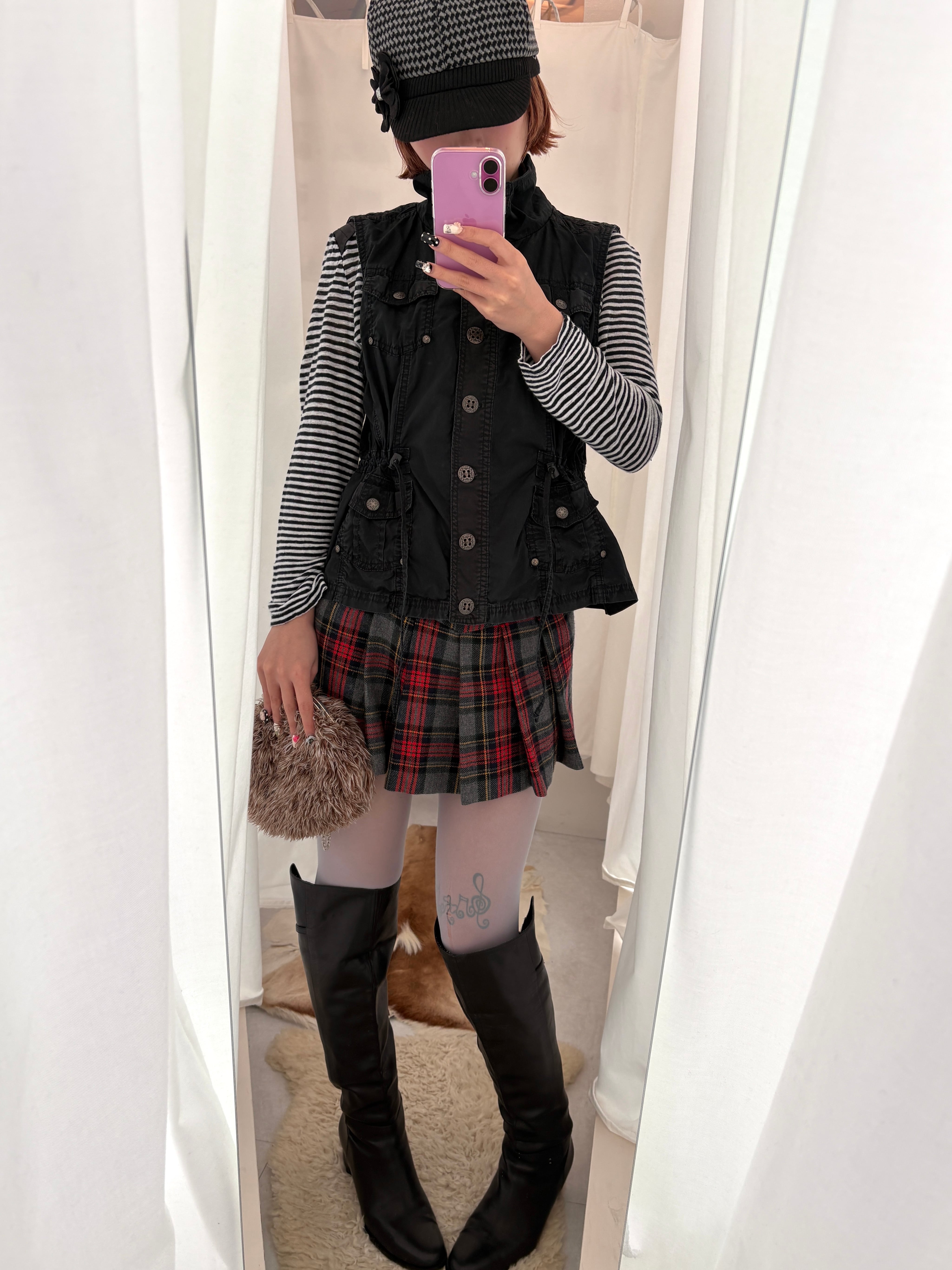 素材: 55%Polyester 45%Wool サイズ: ウエスト幅34.5cm 総丈36cm 着用モデル身長: 163cm