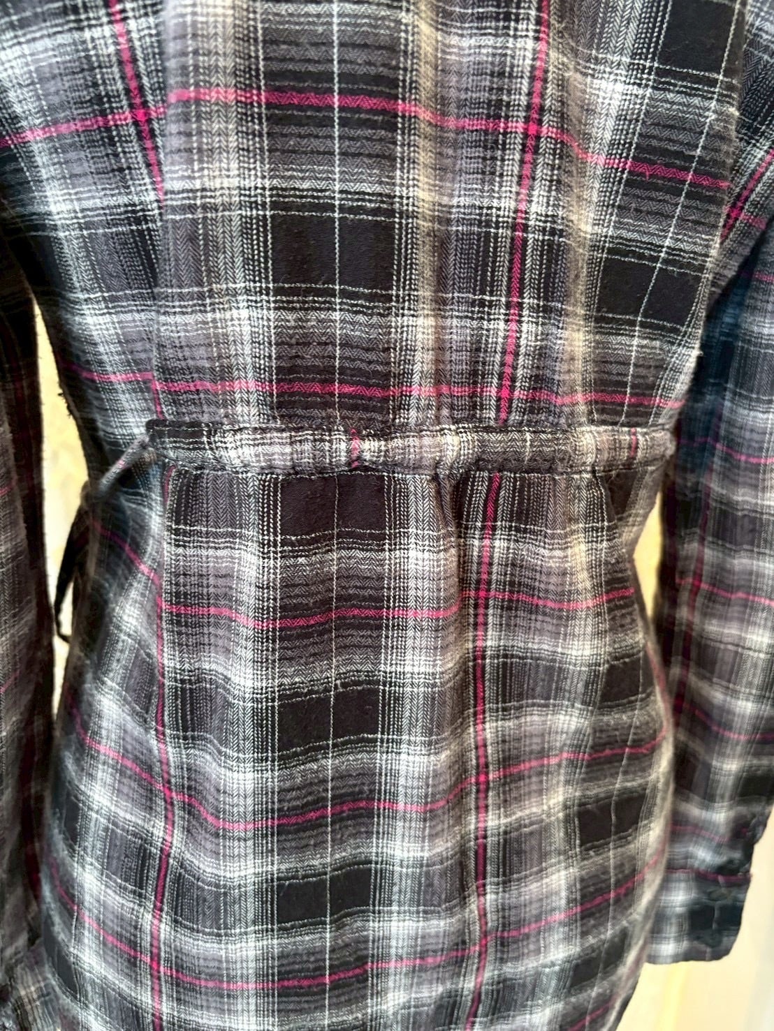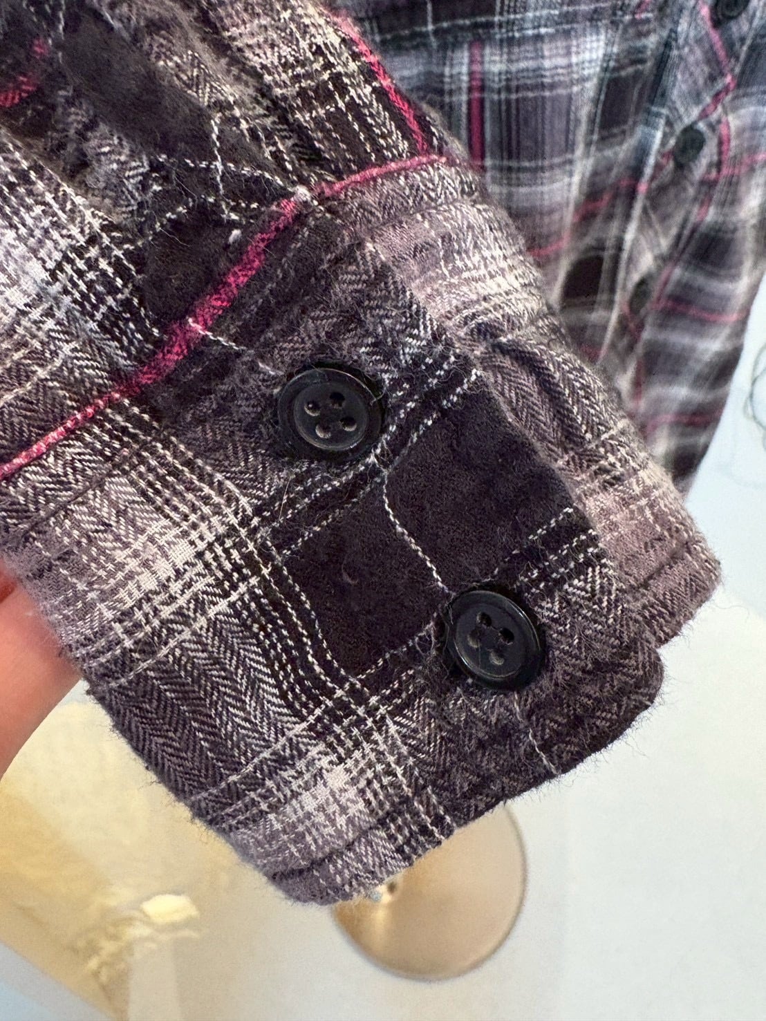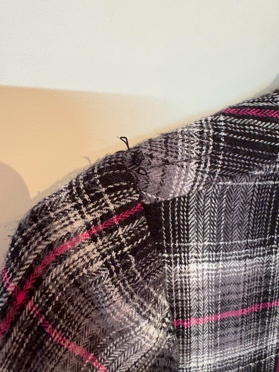 素材: 100%Cotton サイズ: M(表記)肩幅37cm 身幅40cm 袖丈57cm 総丈64cm ダメージ: 写真19枚目の糸のほつれがあります。 着用モデル身長: 163cm