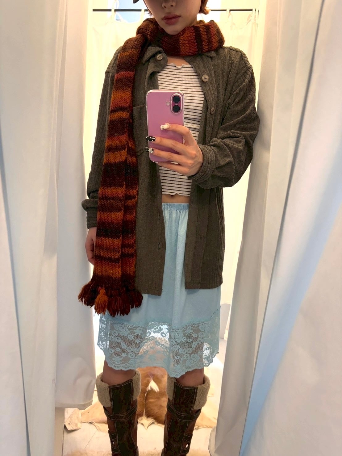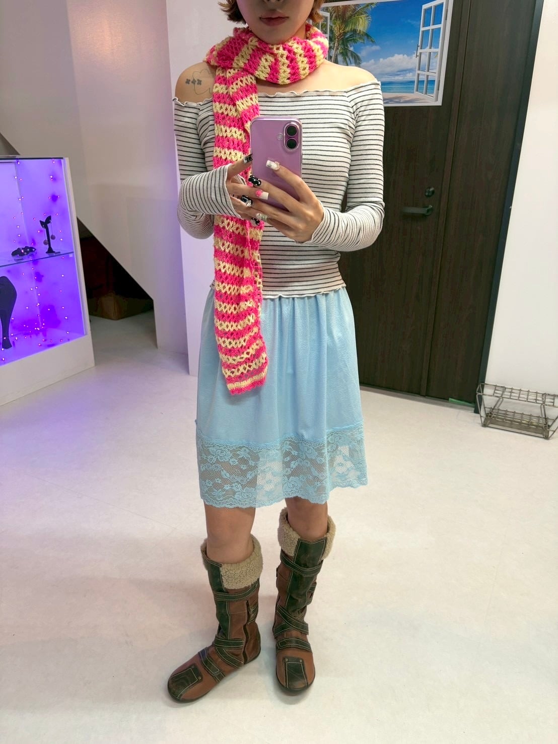 素材: Polyester サイズ: S(表記)肩幅40cm 身幅31cm 袖丈57cm 総丈44cm ダメージ: 全体的に毛立ちがあります。 着用モデル身長: 163cm