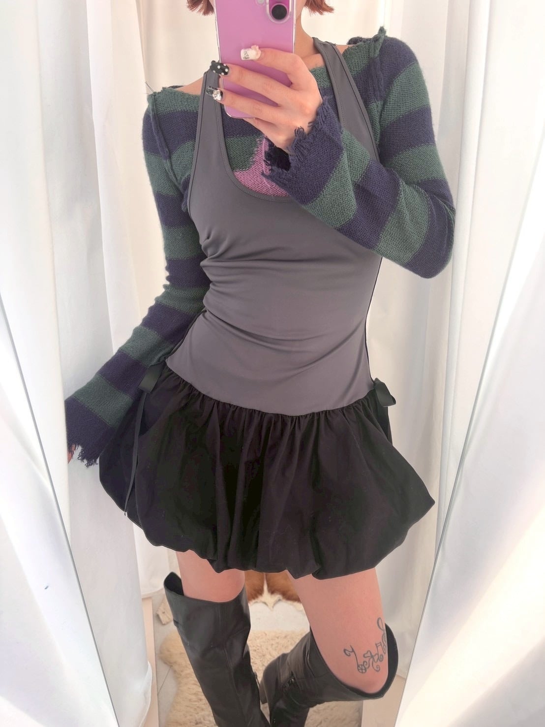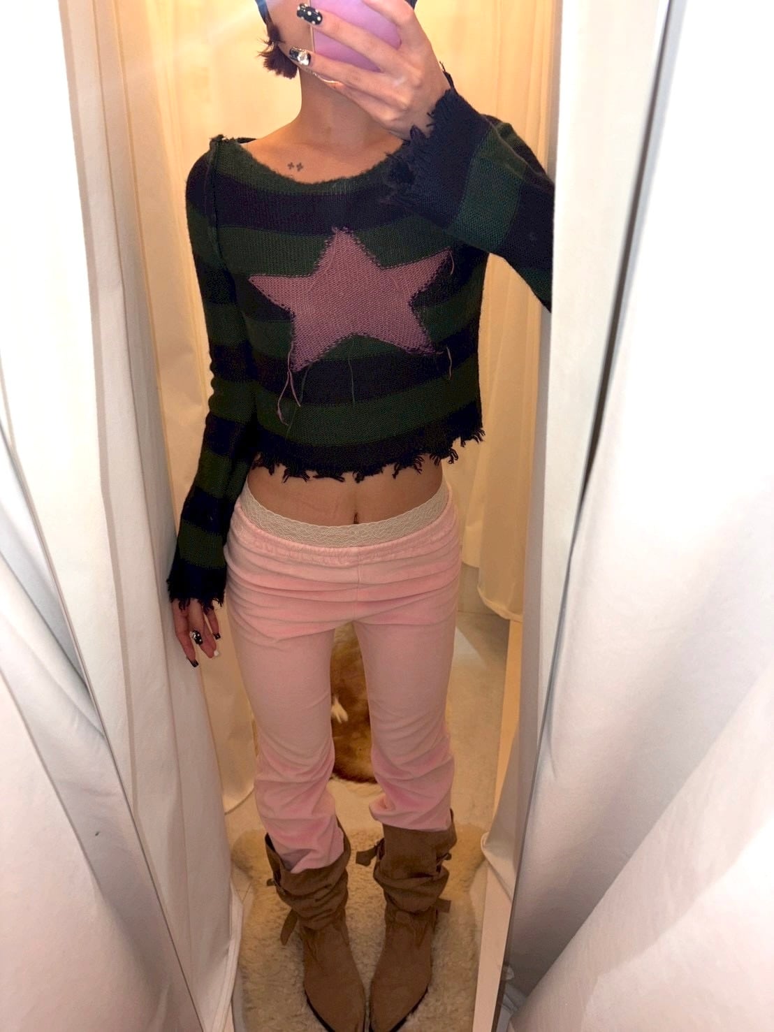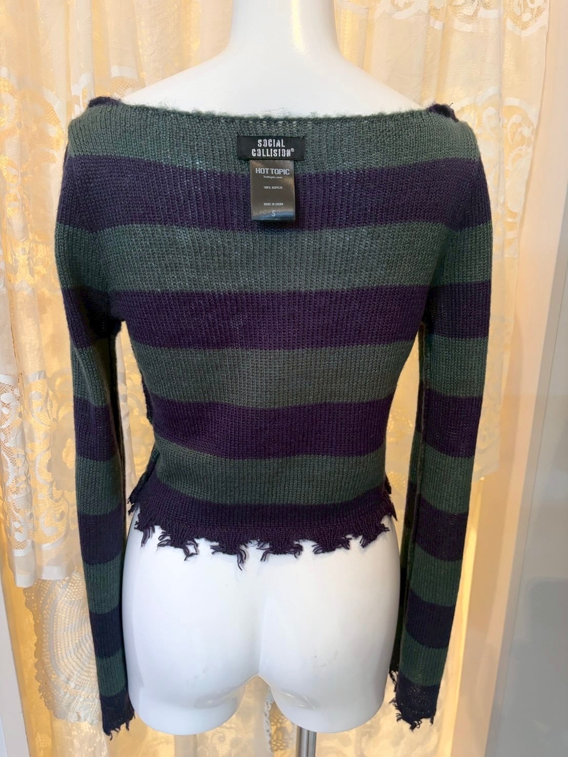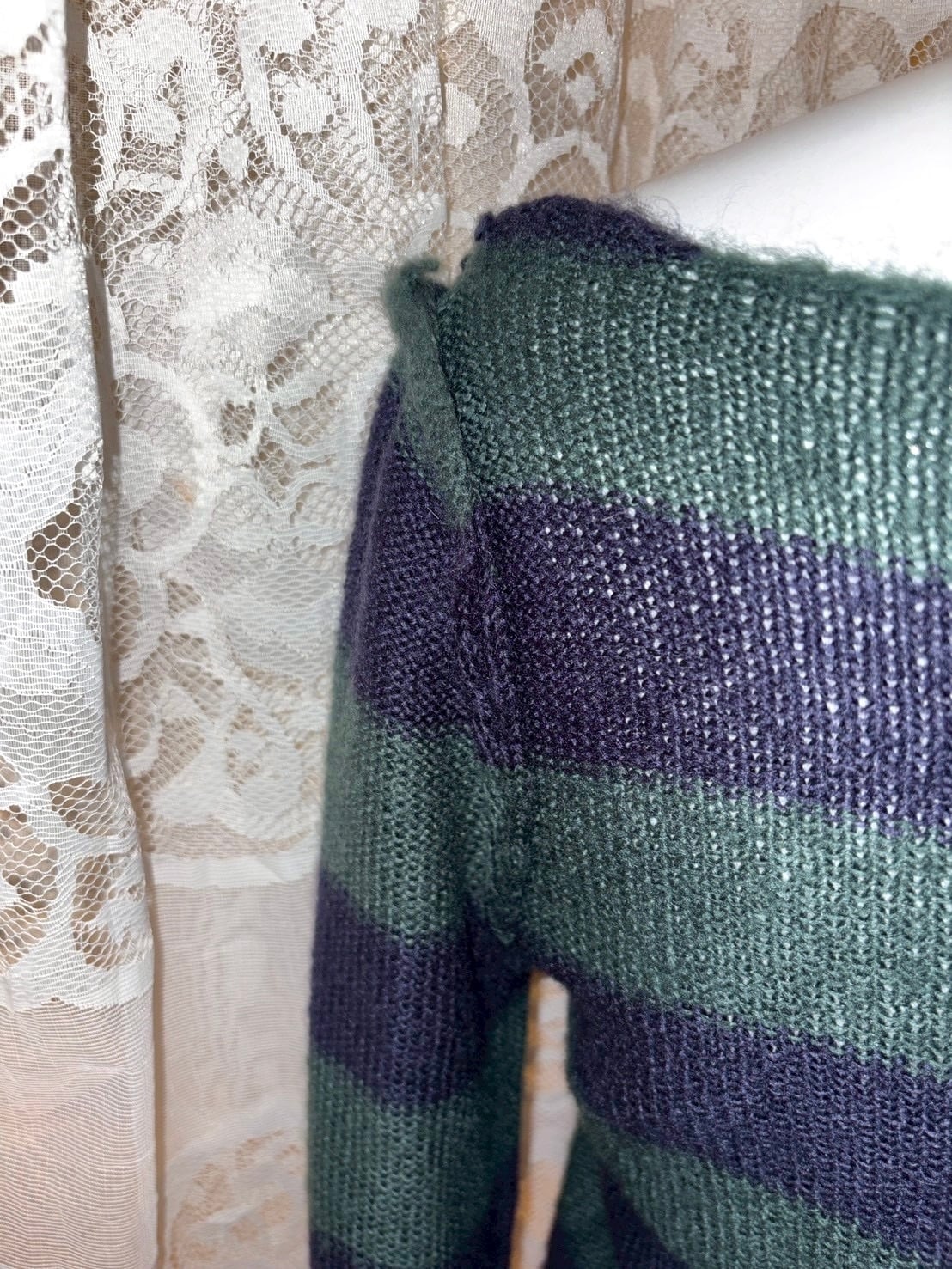 素材: 100%Acrylic サイズ: S(表記)肩幅32cm 身幅46cm 袖丈60cm 総丈43cm ダメージ: デザイン上、糸のほつれがあります。 着用モデル身長: 163cm