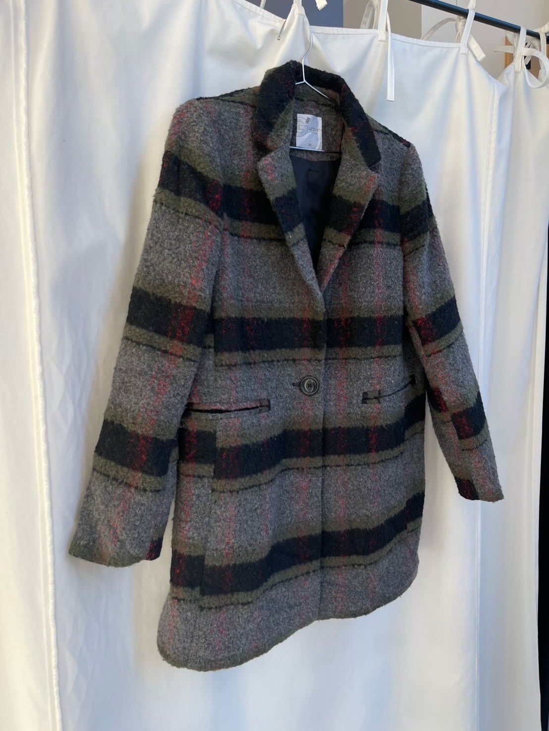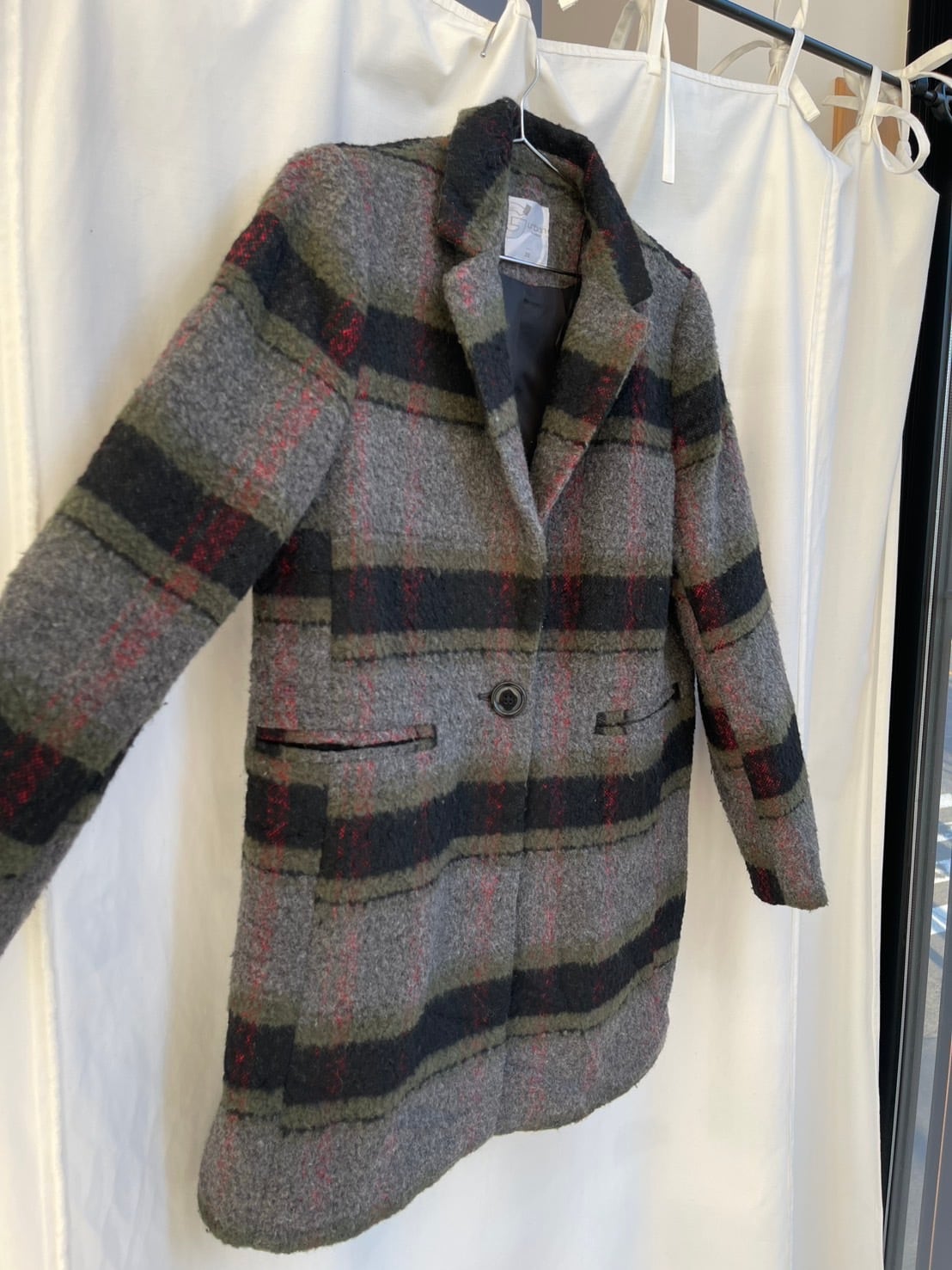 サイズ : 肩幅39.5cm 身幅56cm 裾幅57cm 袖丈64cm 総丈87cm