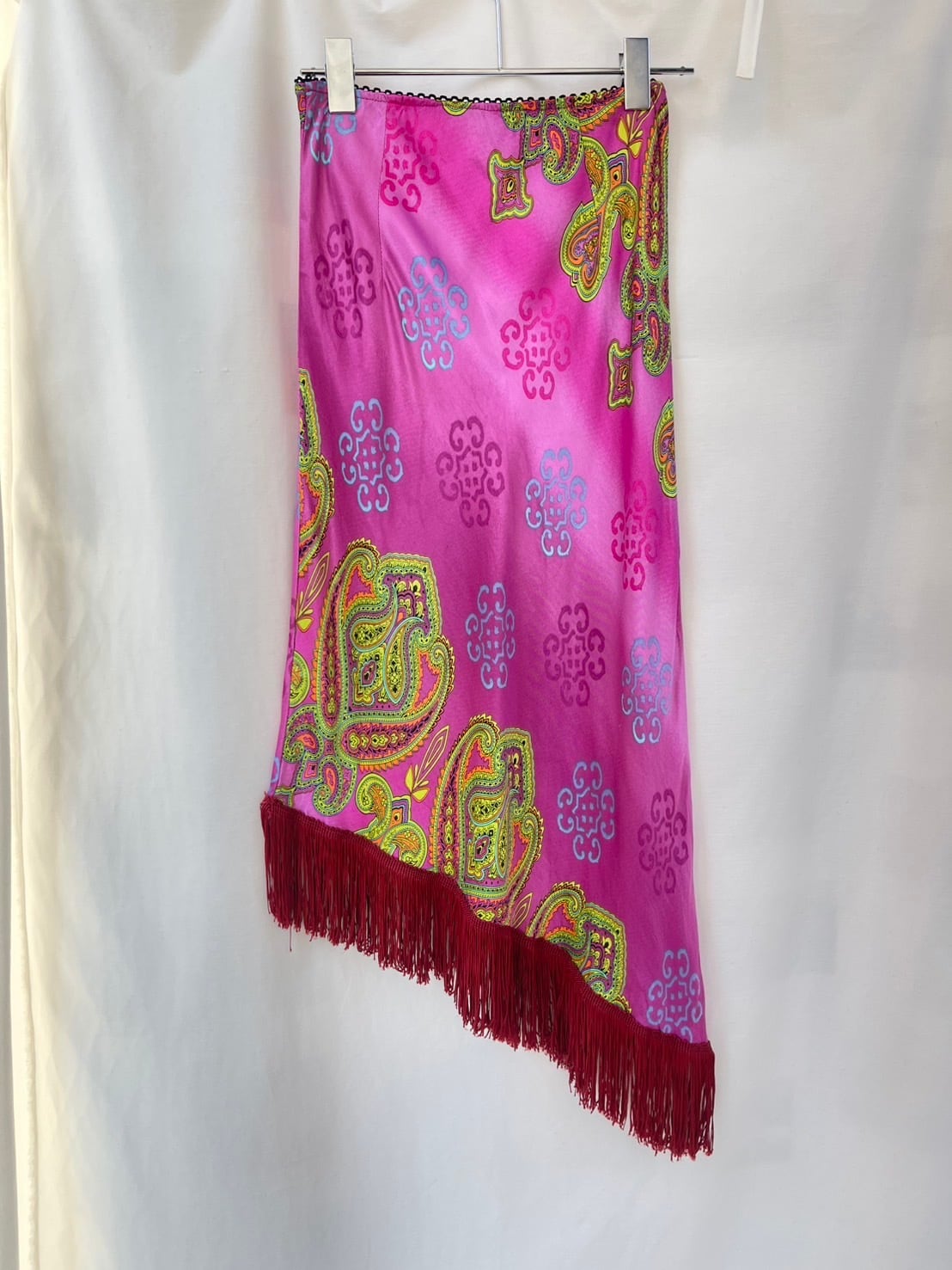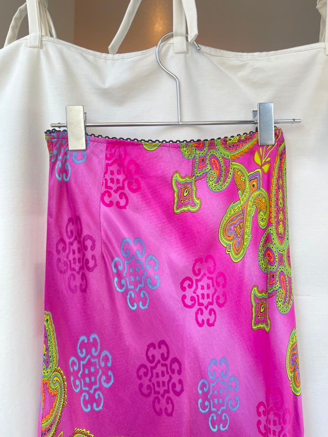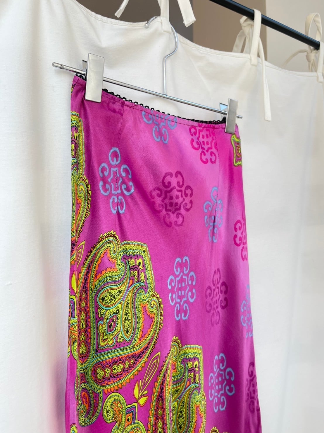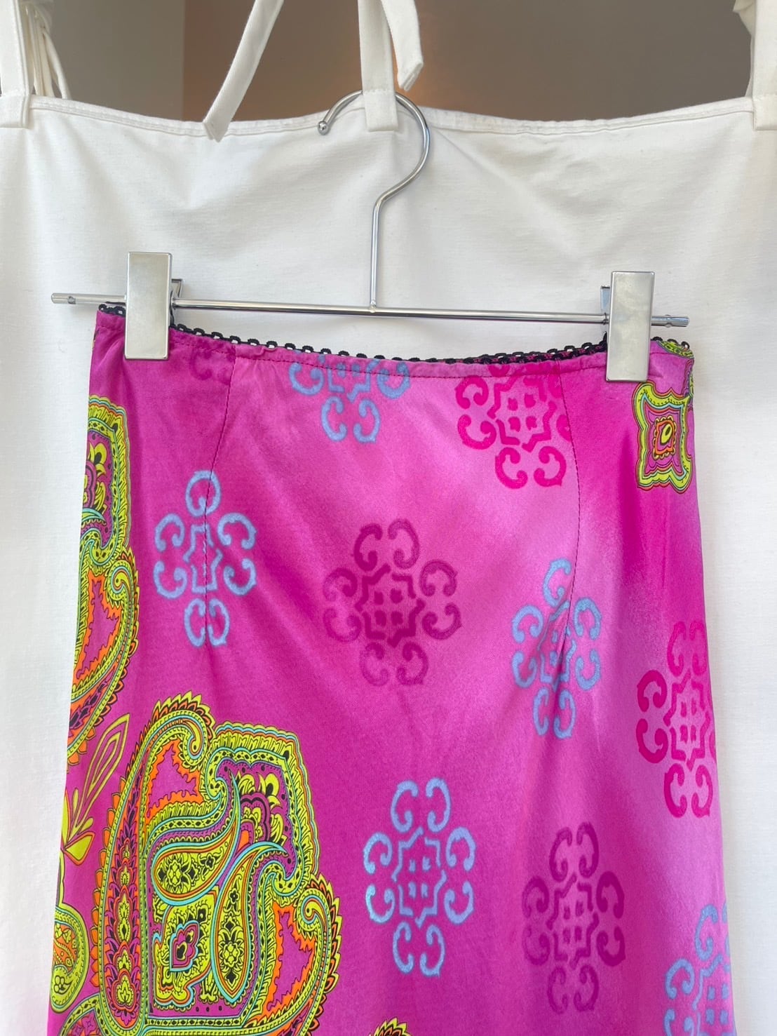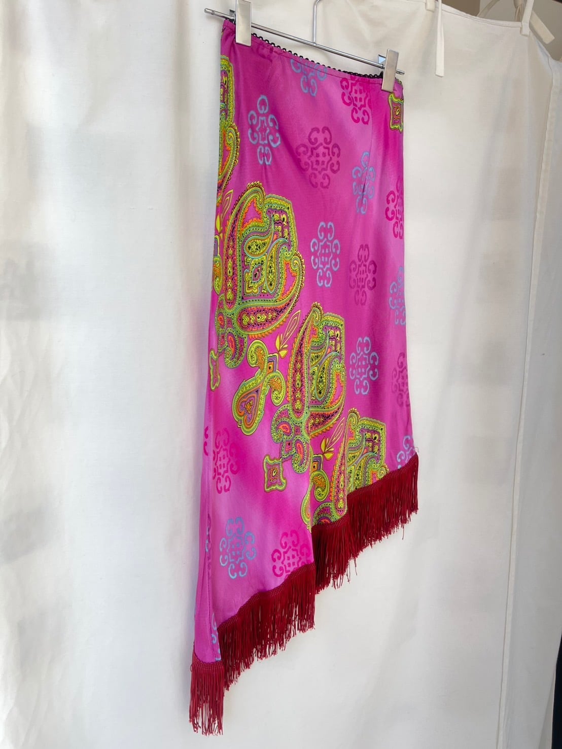 素材 : 100%Viscose サイズ : ウエスト幅28〜42cm 裾幅56cm ダメージ : 写真の11〜13枚目のようなダメージがあります 着用モデル身長 : 175cm