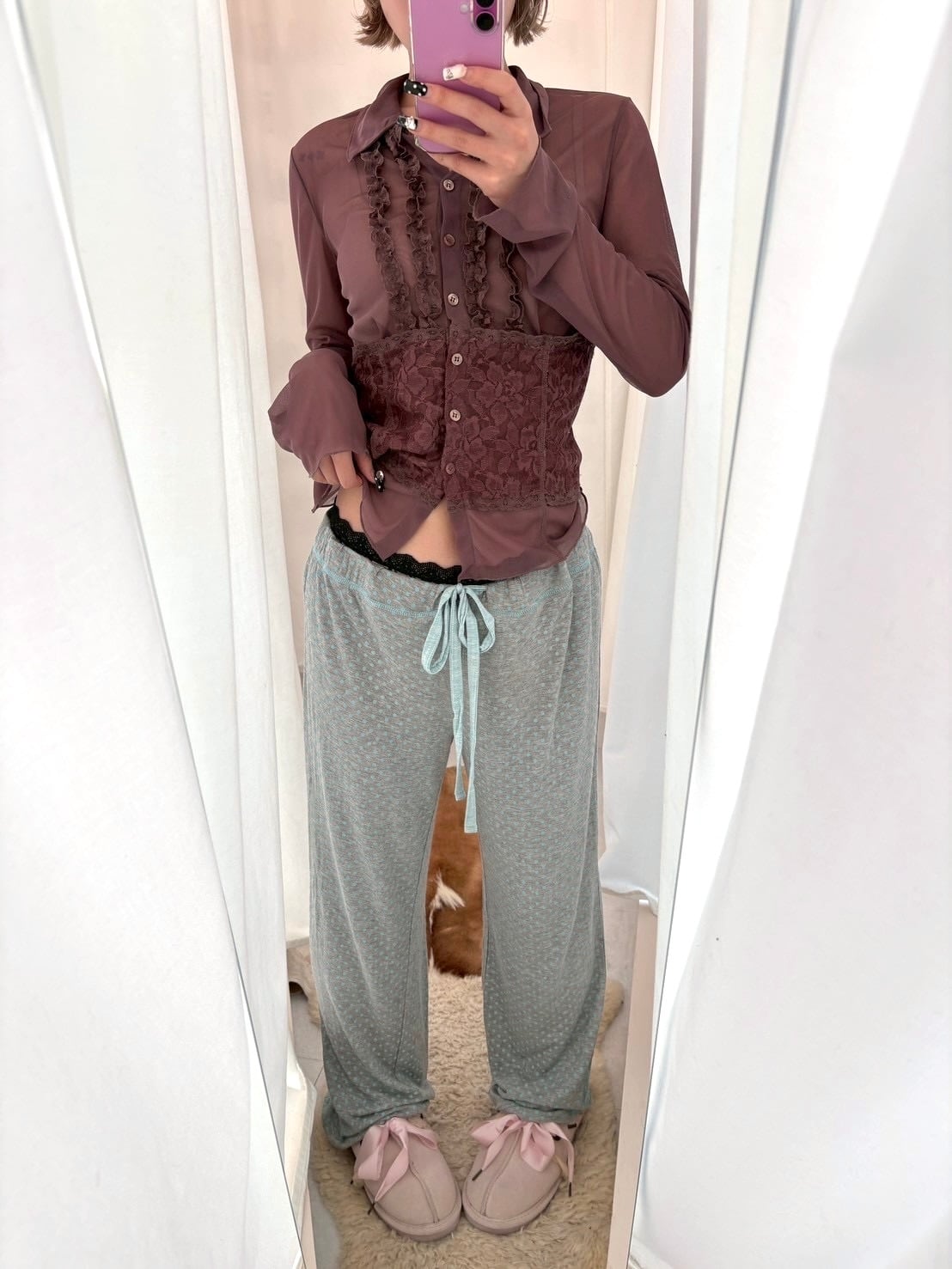素材: Cotton サイズ: ウエスト幅(ゴム)42cm 股上28cm 股下70cm 総丈98cm 着用モデル身長: 163cm